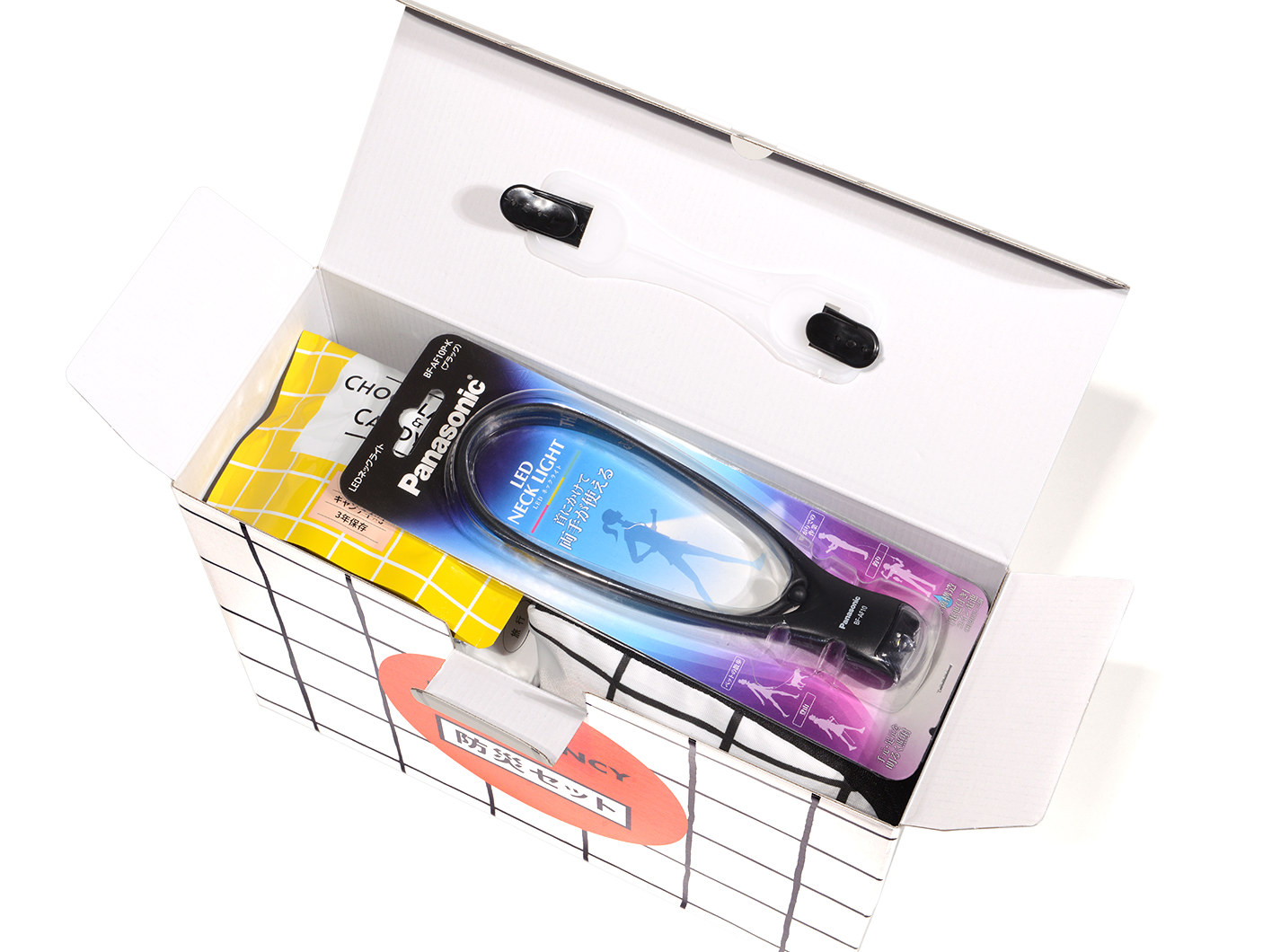 中には基本の防災グッズのほか、避難用に個人がそれぞれ必要なものを持ち出せるように
