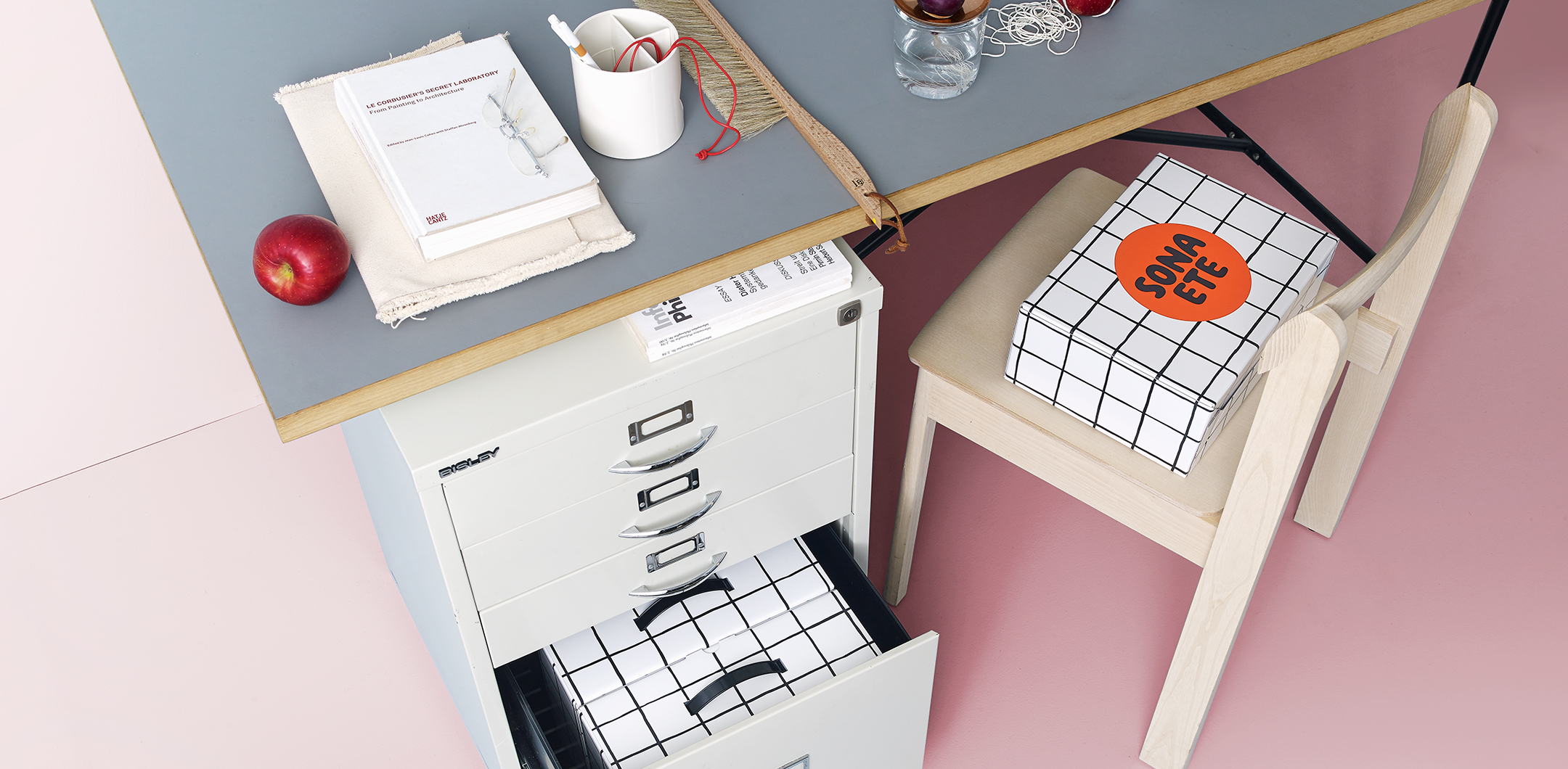 一般的にオフィスで使われているキャビネットやデスクワゴンにもぴったりと収まることを考え、